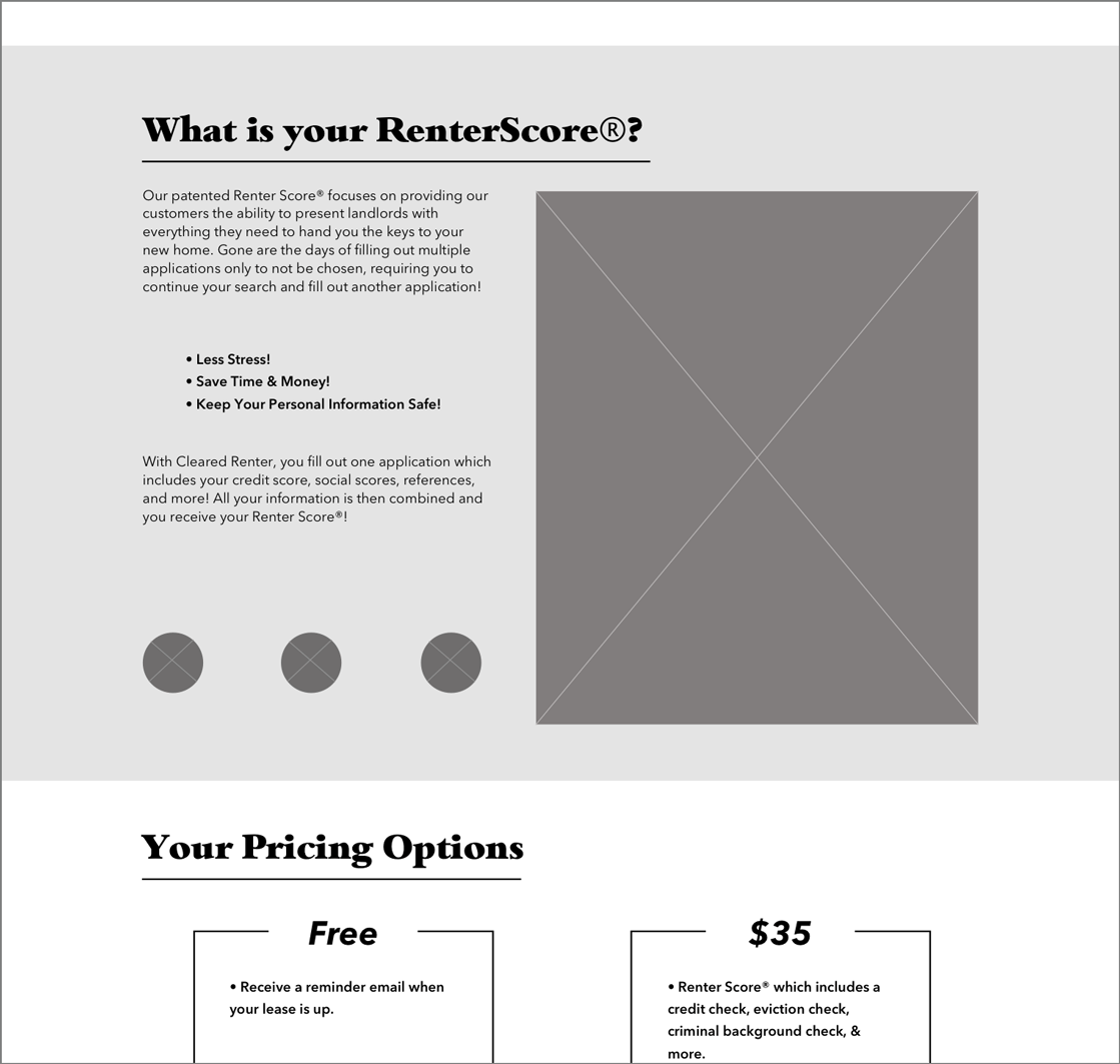 We sat down with Cleared Renter’s stakeholder to understand the business goals. Our team learned that her largest priority was focusing on the renter’s flow through the website, including registering an account and applying for their RenterScore®, all while keeping the compassionate element of the company in the design.